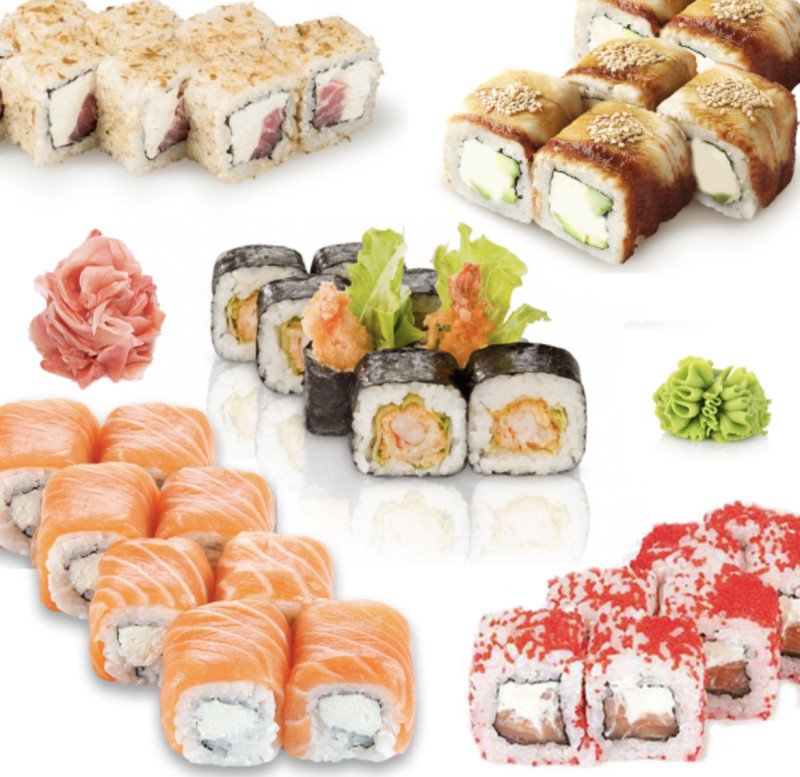 Ролл эби сарадо, ролл нежность, ролл нежный унаги, ролл фудзияма, ролл якогама